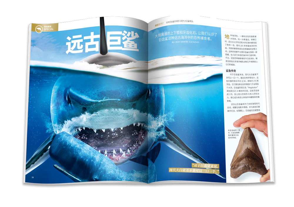 如今,大白鲨是凶名远播的海洋杀手,而在几百万年的海洋中,还存在着大白鲨的“超级加强版”——巨齿鲨。它们同样有着流线型的身体和满口利齿,但个头却大了好多倍。巨齿鲨虽然早已销声匿迹,但它们留下了大到离谱的上下颚和牙齿化石,让我们得以认识这种恐怖捕食者。